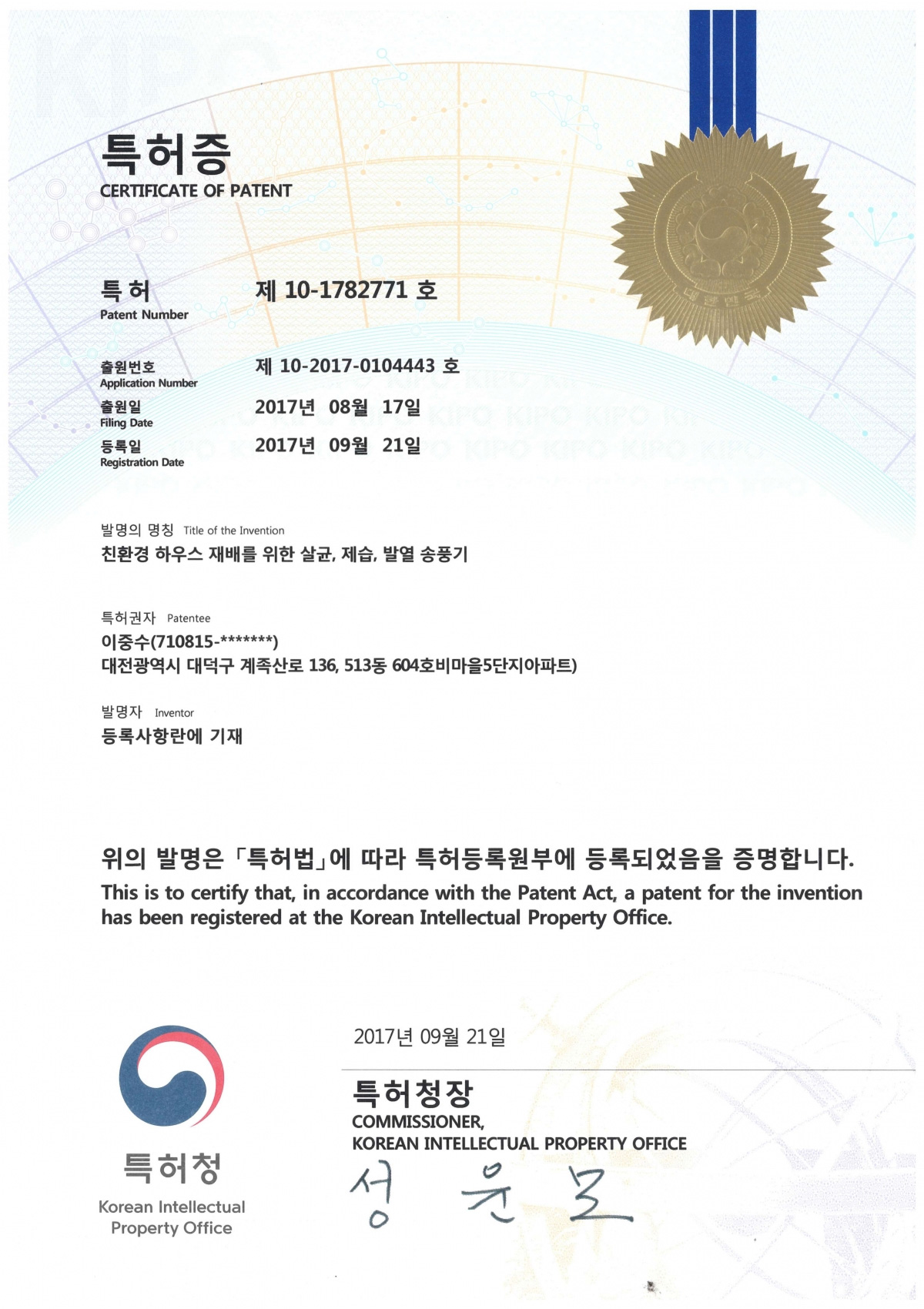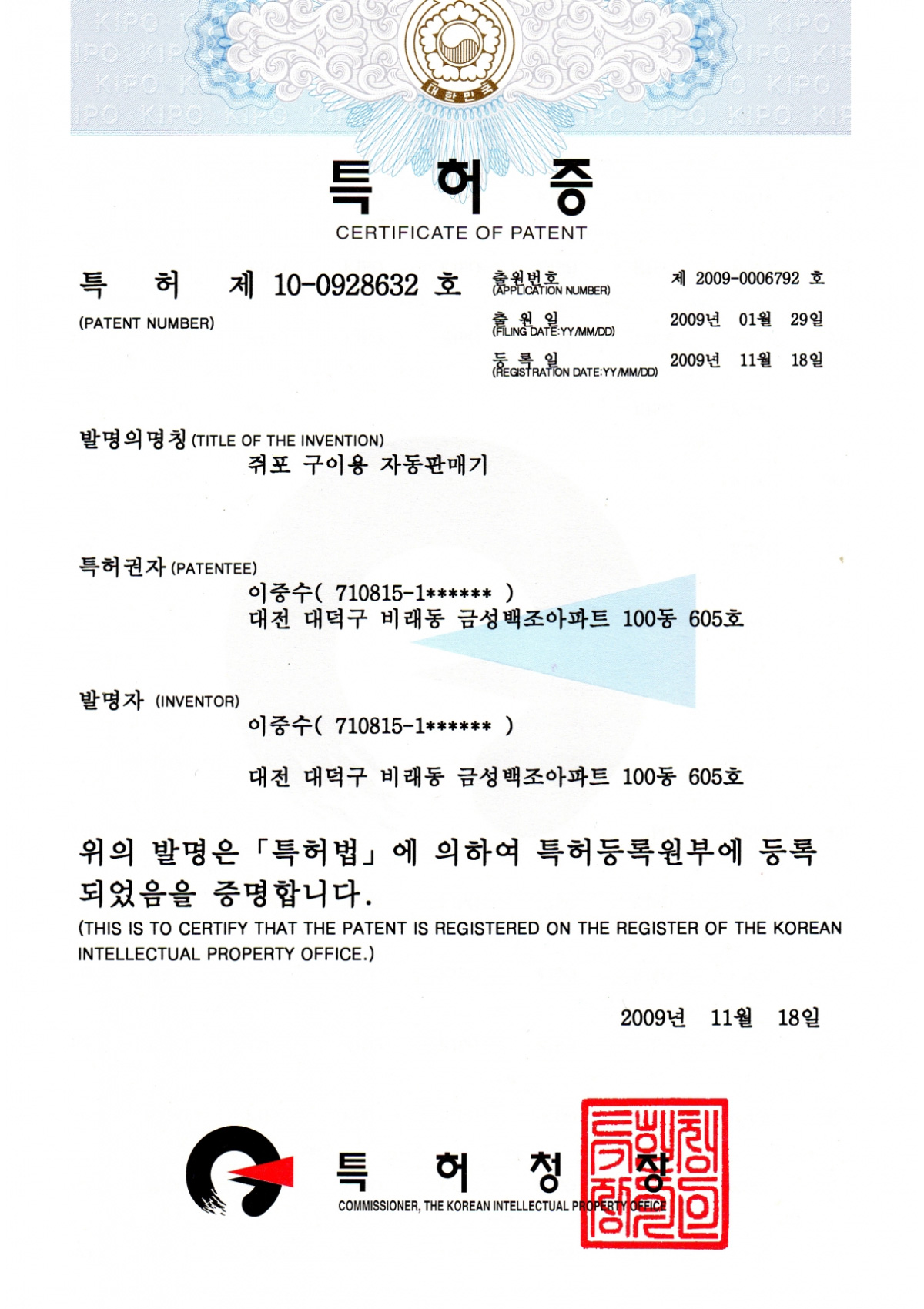 • 개인정보보호책임자: 이중수